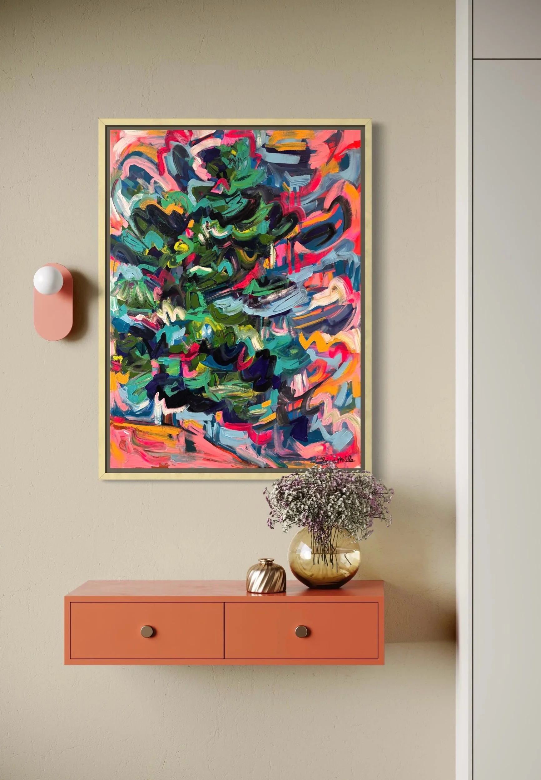 A completely wild and loose abstracted pine. This was a lot of fun to create, and although the subject matter is landscape, she is up for interpretation. The name echos the sense of fun and vagueness in this whimsical work. Acrylic on canvas. #Abstractartist #artistsofinstagram #artforsale #originalart #abstractart #canadianartist #colourist #lifeisart #artislife #interiordesign #abstracttree