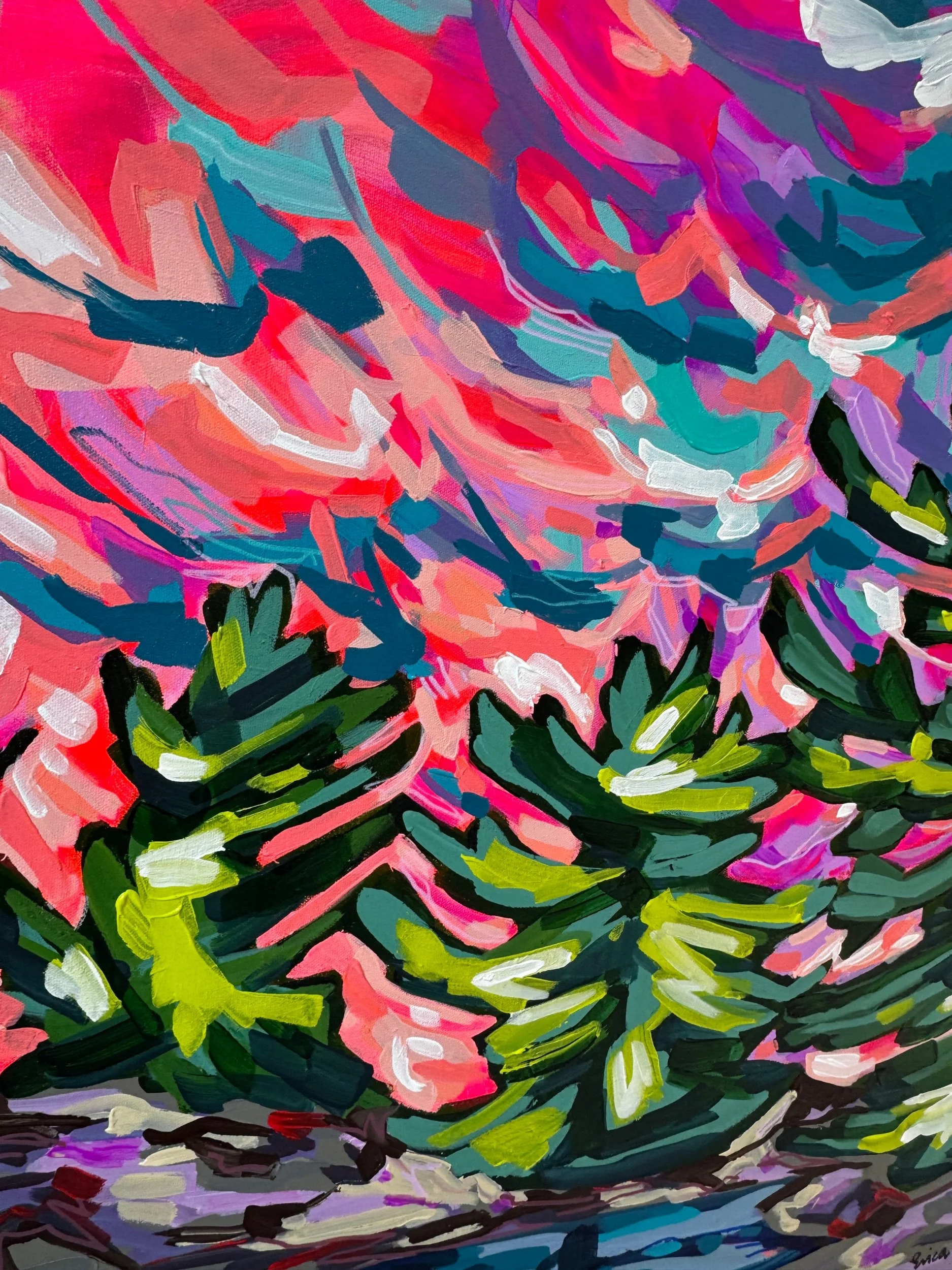 When the sky turns wild at the right time and everything is aglow…..Also a reminder to be your wild self sometimes. Acrylic and heavy gloss on canvas.